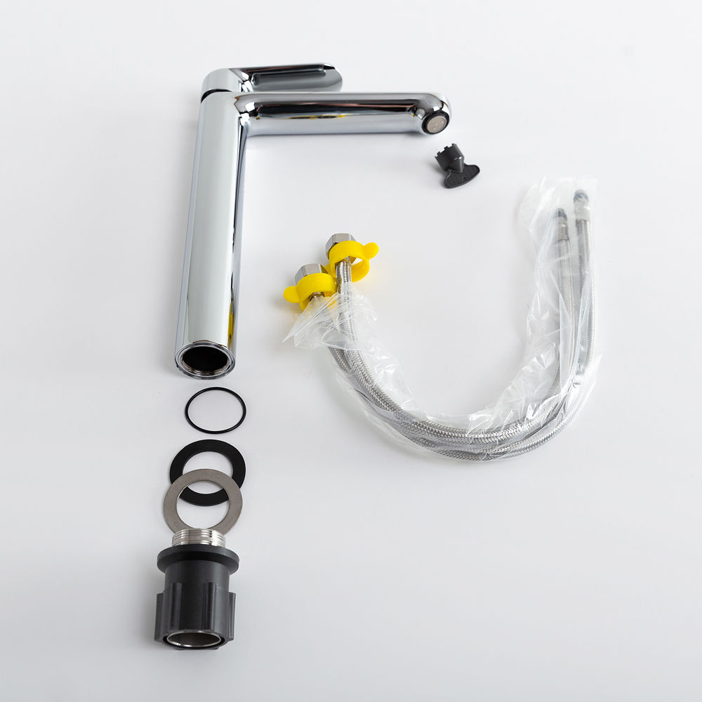 Поворотный аэратор Neoperl, поставляемый с пластиковым ключом для удобного обслуживания, позволяет легко регулировать направление струи воды, добавляя еще больше практичности в ваш рутинный уход. Гибкая подводка из нержавеющей стали G1/2 длиной 500 мм обеспечивает простоту монтажа и надежную фиксацию, а обтекаемая форма смесителя облегчает уход, делая его идеальным для поддержания чистоты в ванной.