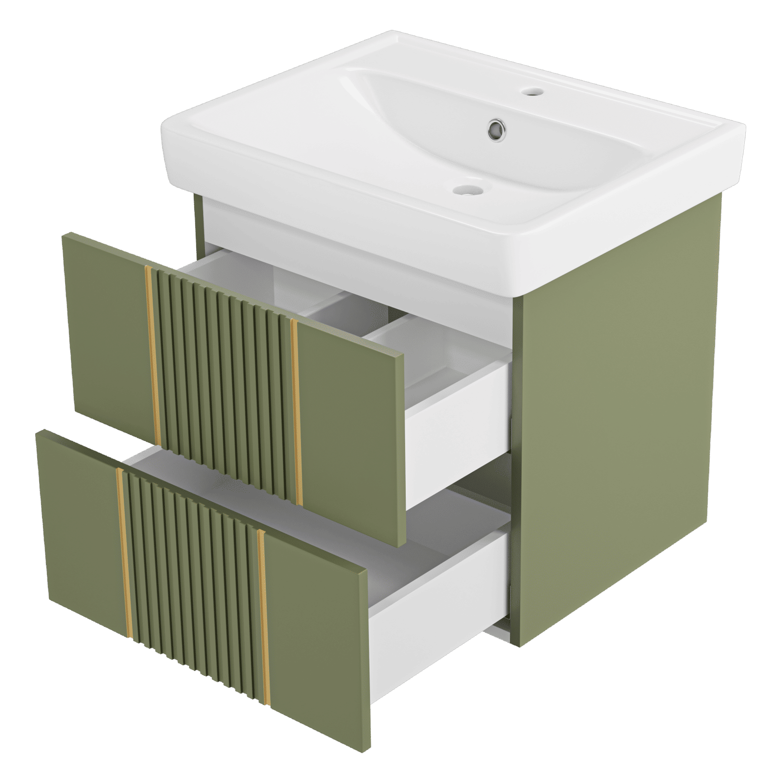 Тумба под раковину Brevita Vega 60 подвесная с 2 ящ. / VEG-09060-0802Я олива матовая эмаль