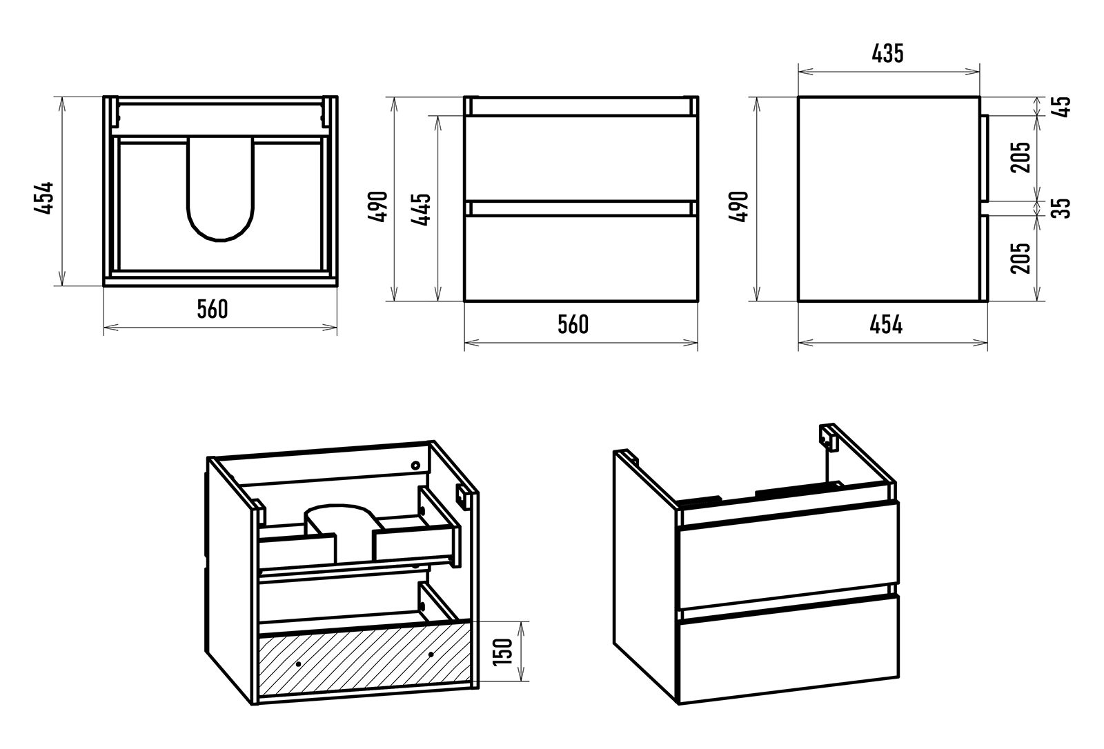 Тумба под раковину Brevita Victory оснащена двумя выдвижными ящиками, которые открываются на направляющих с доводчиком скрытого монтажа, обеспечивая плавное и бесшумное использование. Подвесной монтаж добавляет легкости и визуально увеличивает пространство, делая вашу ванную более стильной и современной.