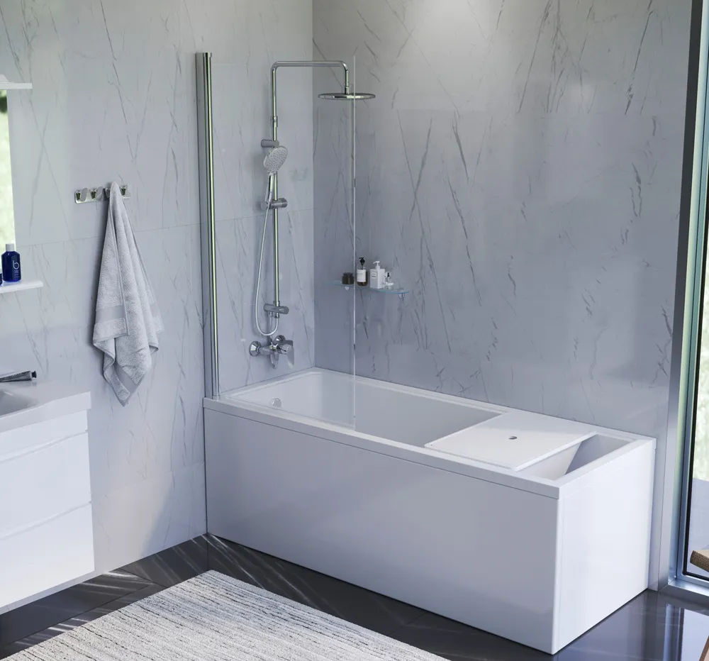 Душевая шторка из закаленного ударопрочного стекла и алюминиевого влагостойкого профиля бренда AM.PM коллекции Gem выполнена в безупречном стиле с чистыми гранями и четкими формами.
