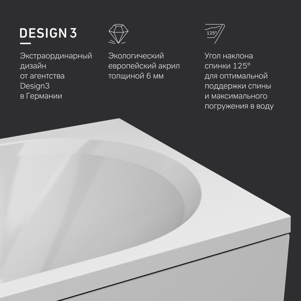 Ванна производена из высококачественных европейских материалов. Для армирования ванны используется смола без использования стирола — отсутствие запаха и вредных выделений, которая обеспечивает повышенную прочность.