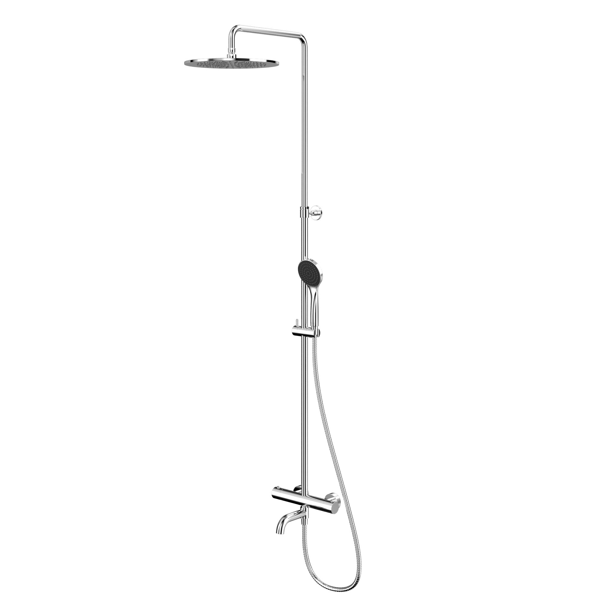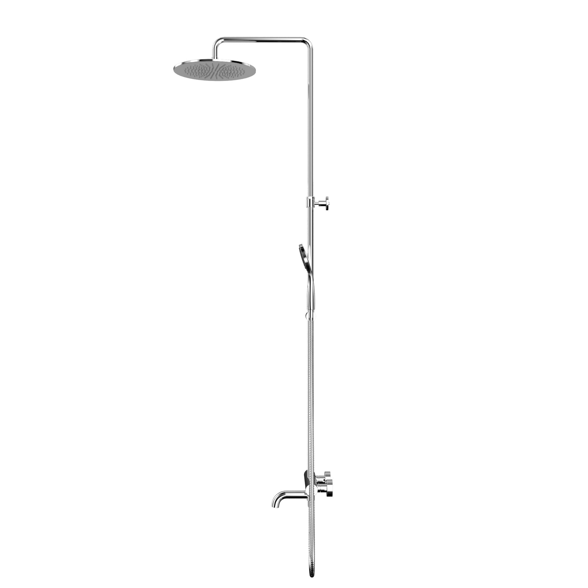 Ее верхний душ диаметром 300 мм из прочной латуни создает ощущение простора и свежести, а поворотный кронштейн с регулировкой высоты от 960 до 1500 мм позволяет каждому члену семьи настроить его под себя. Излив длиной 200 мм добавляет удобства при наполнении ванны, дополняемый гибким душевым шлангом в 150 см, который исключает любые неудобства.