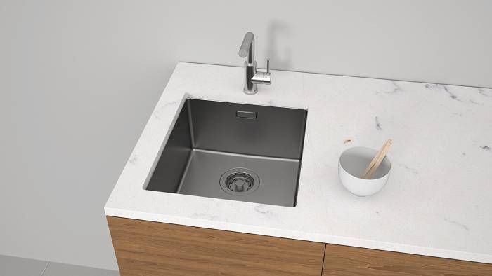 Кухонная мойка из нержавеющей стали Paulmark Yuni 39 Uni YU39-GM вороненая сталь 390х440 мм