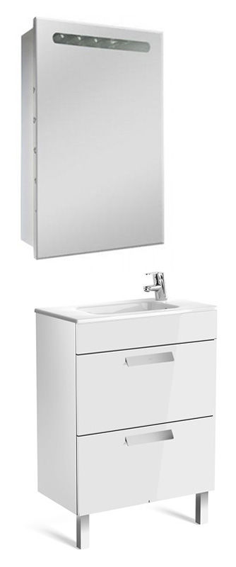 Тумба с раковиной Roca Debba 60 см ZRU9302708 + 32799H00Y белый глянцевый