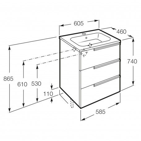 Тумба с раковиной Roca Victoria Ice Edition 60 см 3ящ. ZRU9302834 + 32799E000 белый глянцевый