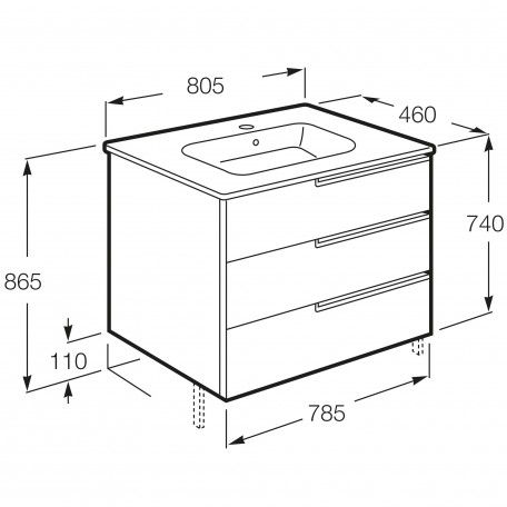Тумба с раковиной Roca Victoria Ice Edition 80 см 3ящ. ZRU9302835 + 32799C000 белый глянцевый